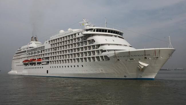 Surabaya - Kapal pesiar Seven Seas Navigator berlabung di Pelabuhan Tanjung Perak, Surabaya. Kapal pesiar itu membawa 469 wisatawan.