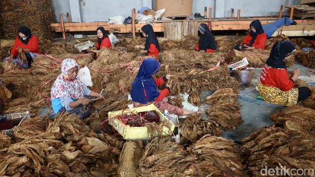 Sejumlah buruh tembakau di kawasan Klaten, Jawa Tengah, melakukan aktivitas pengecekan kualitas tembakau, Rabu (28/12/2024).