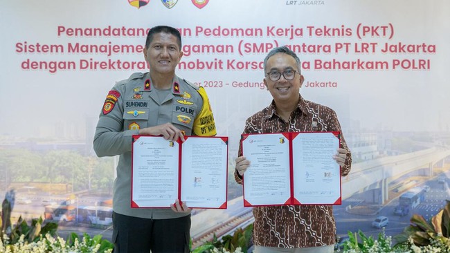 Jakarta - LRT Jakarta dan Polri sinergi dalam Pedoman Kerja Teknis Sistem Manajemen Pengamanan Objek Vital. Ini untuk wujudkan tempat kerja aman, efisien dan produktif.
