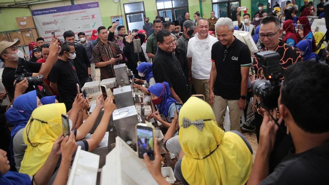 Kendal - Ganjar Pranowo mengunjungi pabrik PT Sari Tembakau Harum di Kendal, Jawa Tengah. Ia berbincang dengan buruh perempuan di pabrik tersebut.