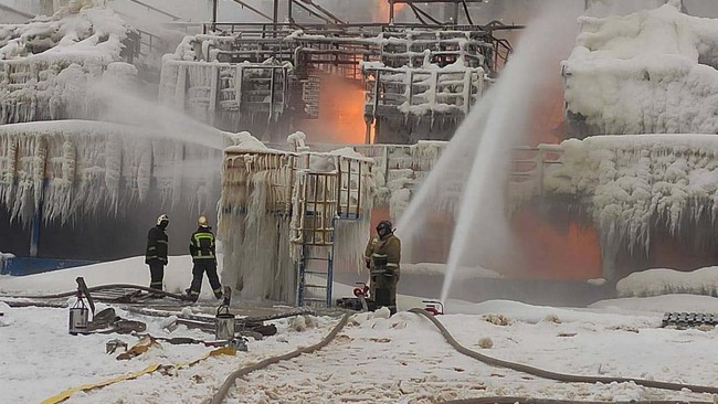 Rusia - Terminal gas alam milik perusahaan Rusia, Novatek di Pelabuhan Ust-Luga di Laut Baltik, terbakar. Kebarana terjadi di tengah hujan salju.