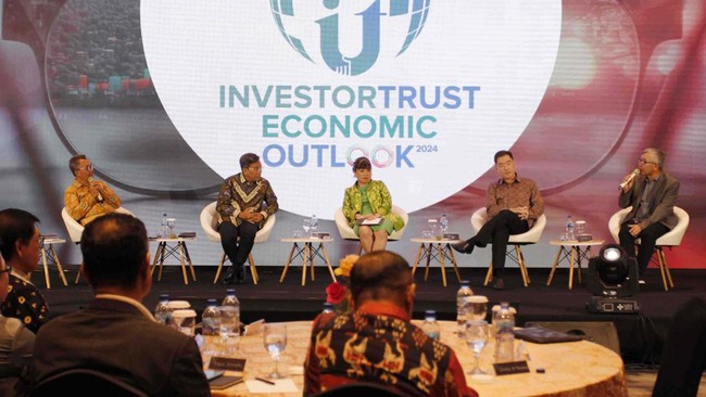 Jakarta - Diskusi Investortrust Economic Outlook 2024 digelar di Jakarta. Diskusi ini membahas peluang dan tantangan para pelaku industri di Indonesia di tahun 2024.