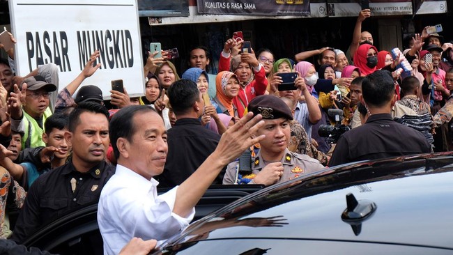 Kunjungi Pasar Mungkid, Jokowi Swafoto dan Salami Pedagang