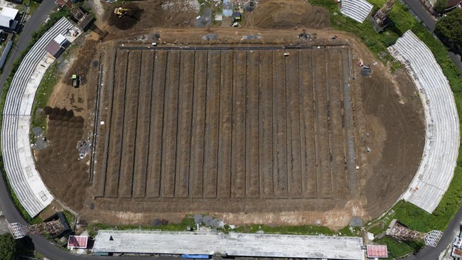 Ternate - Stadion Gelora Kie Raha di Kota Ternate, Maluku Utara, tengah direnovasi. Begini progresnya.