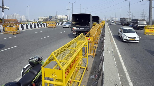 Ini penampakan barikade yang dipasang polisi India di perbatasan Ghazipu jelang demo para petani yang akan digelar besok, Selasa (13/2).