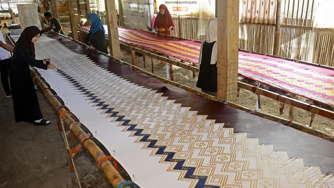 Sulawesi Selatan - Rumah Batik Cantika Sabbena di Soppeng, Sulawesi Selatan, memproduksi kain batik kalong hingga 1.000 meter dalam sebulan. Yuk lihat pembuatannya.