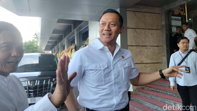 Jakarta - Menteri ATR Agus Harimurti Yudhoyono (AHY) memberikan arahan kepada jajarannya sebelum terbang ke Manado. Begini gayanya.