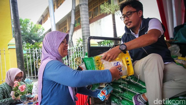 Jakarta - Bulog menggelar program Aksi Amankan Harga Pangan di Setiabudi, Jakarta. Warga pun berdatangan untuk membeli sembako murah yang dijual di program tersebut.