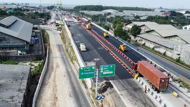 Semarang - Jalan dan jembatan Tol Semarang-Demak Seksi 1A tengah ditinggikan. Hal ini sebagai upaya mengurangi dampak banjir rob tahunan.