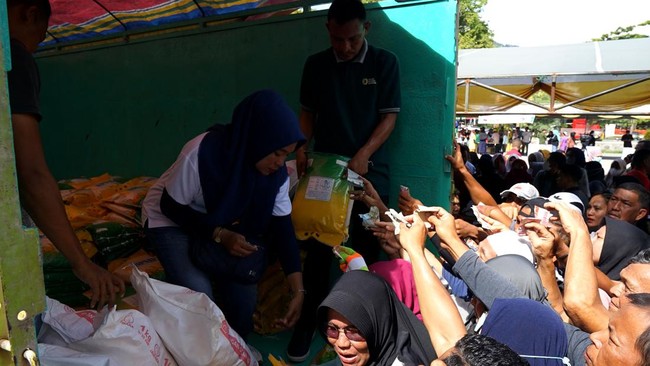 Gorontalo - Pemerintah Kota Gorontalo bersama Bulog menggelar gerakan pangan murah jelang Ramadan. Sejumlah bahan pokok yang dijual di bawah harga pasaran.