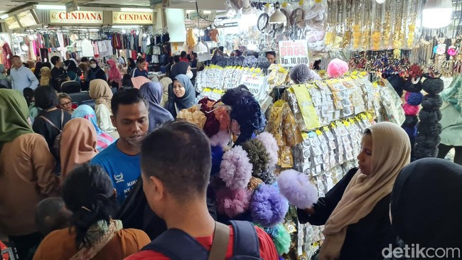 Jakarta - Pasar Tanah Abang membeludak menjelang masuknya bulan Ramadan. Warga berdesak-desakan saat melewati kios.