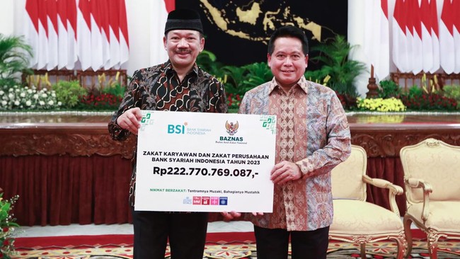 Jakarta - BSI mendorong ekonomi umat dengan peningkatan zakat perusahaan. BSI menyerahkan Rp 222,7 miliar zakat perusahaan melalui Baznas.