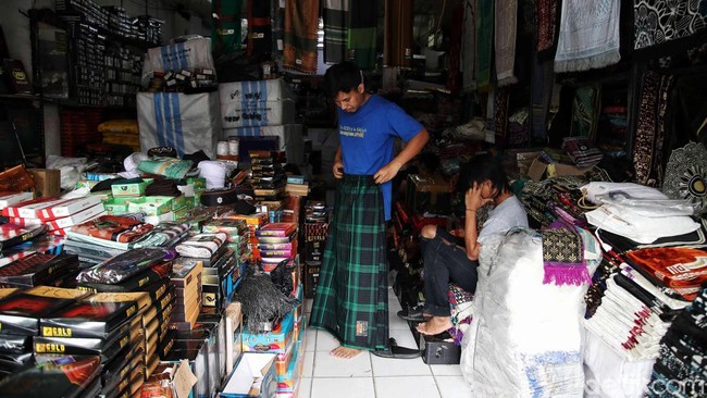 Jakarta - Ramadan membawa berkah bagi pedagang sajadah dan sarung di Tanah Abang, Jakarta. Penjualan sajadah dan sarung meningkat di bulan suci.