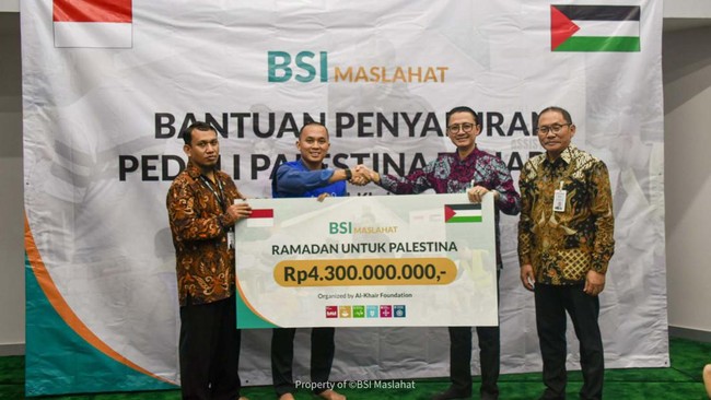 Jakarta - BSI Maslahat menyalurkan bantuan kemanusiaan tahap 4 untuk rakyat Palestina. Jumlah bantuan yang disalurkan Rp 4,3 miliar.