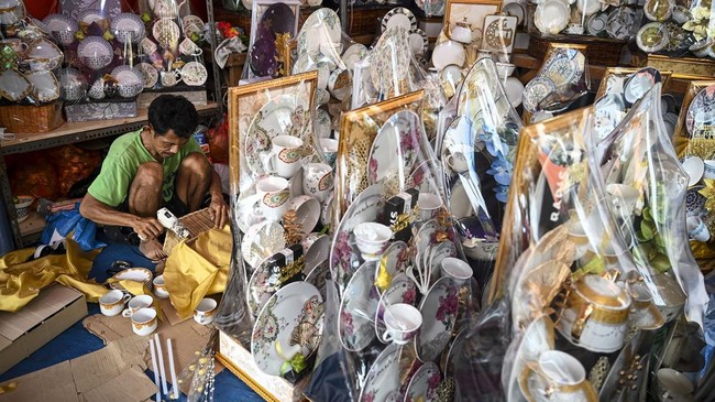 Pedagang menyelesaikan pembuatan parsel lebaran di kawasan Cikini, Jakarta, Jumat, (22/3/2024). Antara Foto/Erlangga Bregas Prakoso.