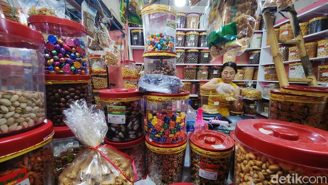 Jakarta - Penjualan kue kering mengalami peningkatan setiap menjelang lebaran. Omzet penjualan pun meningkat, seperti yang dirasakan pedagang di Pasar Jatinegara, Jaktim.