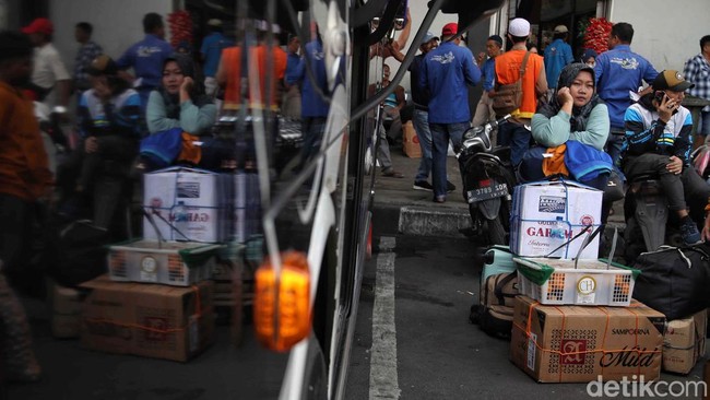 Jakarta - 9 Hari jelang Lebaran, warga mulai mudik ke kampung halaman. Seperti terlihat di Terminal Tanjung Priok, Jakarta Utara, Senin (1/4/2024).