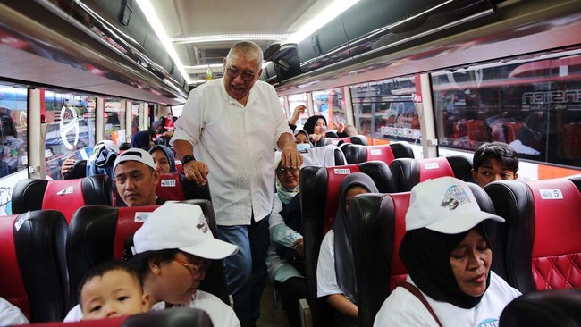 Jakarta - Dirut Perum Bulog Bayu Krisnamurthi melepas keberangkatan peserta "Mudik Asyik Bersama BUMN 2024", Jumat (5/4). Pemudik yang diberangkatkan sebanyak 650 orang.