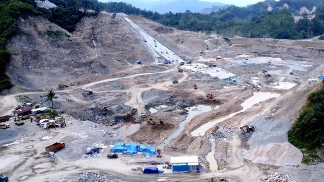 Gorontalo - Pembangunan Bendungan Bulango Ulu di Desa Tuloa, Kabupaten Bone Bolango, Gorontalo, terus dikerjakan. Bendungan ini ditargetkan selesai Oktober 2024.