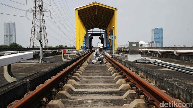 Jakarta - Perawatan prasarana LRT Jakarta dilakukan secara berkala untuk kenyamanan penumpang. Yuk, lihat proses perawatannya di Depo LRT Jakarta, Rabu (8/5/2024).