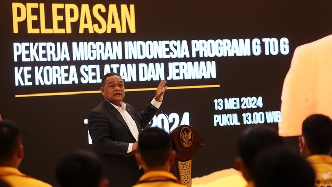 Jakarta - Kepala BP2MI Benny Rhamdani melakukan pelepasan pekerja migran Indonesia (PMI) ke Korea Selatan. Pekerja migran Indonesia yang dilepas sebanyak 85 orang.