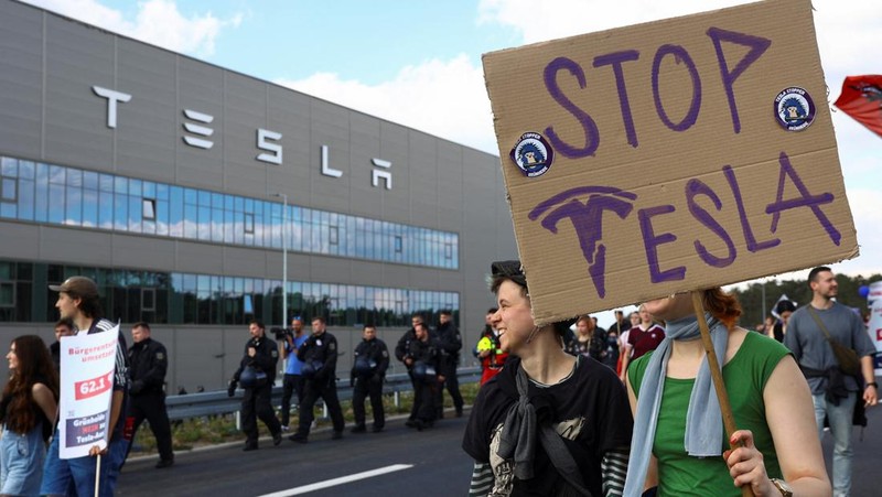 Para aktivis juga menyuarakan penolakan terhadap penggunaan pasokan air publik oleh pabrik secara besar-besaran untuk produksi. Sebagian fasilitas pabrik Tesla yang mempekerjakan sekitar 12.000 orang itu, memang berdekatan dengan lokasi perairan yang dilindungi.