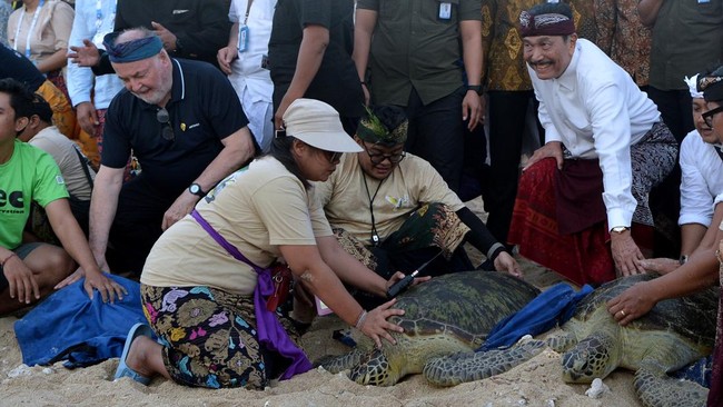 Bali - Rangkaian acara World Water Forum ke-10 di Bali telah dimulai. Salah satunya kegiatan melepasliarkan penyu, yang dihadiri Menko Marves Luhut Binsar Pandjaitan.