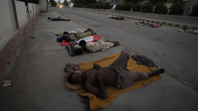 Potret Buruh Tidur di Pinggir Jalan gegara Cuaca Panas Pakistan