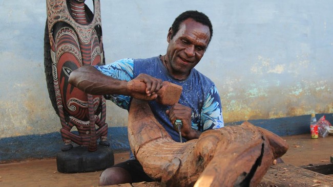 Jayapura - Kerajinan kayu motif etnis Papua masih terus diproduksi sebagai bagian dari warisan budaya. Patung ini dijual mulai Rp 300 hingga Rp 1 juta.