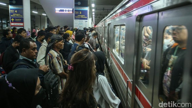 Jakarta - Ribuan warga yang menggunakan kereta api di jam pulang pergi kerja sangatlah banyak. Begini potret perjuangan anak kereta saat berdesakan berebut tempat.