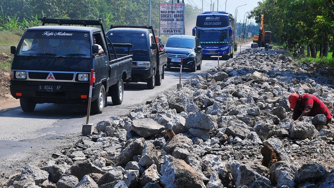 Kudus - Pemprov Jawa Tengah melalui Dinas Pekerjaan Umum, Bina Marga dan Cipta Karya mulai memperbaiki jalan provinsi ruas Jati-Klambu di KM 8+69, Kudus.