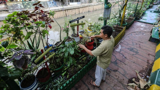 Jakarta - Kelompok tani di Cikini, Jakarta, memanfaatkan lahan pinggir Kali Ciliwung untuk urban farming. Hasil panennya dibagikan kepada warga.