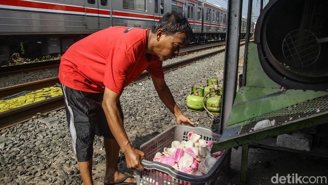 Potret Perajin Kerupuk di Pinggir Rel Kereta Jakarta