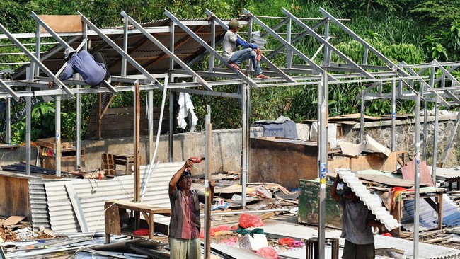 Jakarta - Revitalisasi Pasar Jambu Dua di Kota Bogor telah rampung. Tempat penampungan sementara (TPS) yang sebelumnya digunakan pedagang mulai dibongkar.