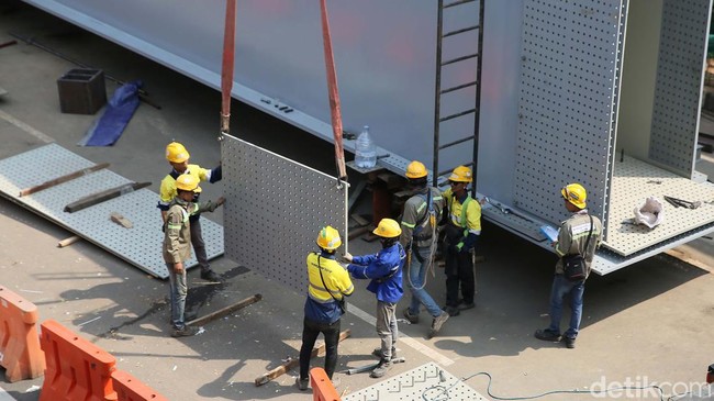 Jakarta - Para pekerja terus mengebut pembangunan proyek LRT Velodrome-Manggarai. Saat ini progresnya sudah mencapai 22,4 persen.