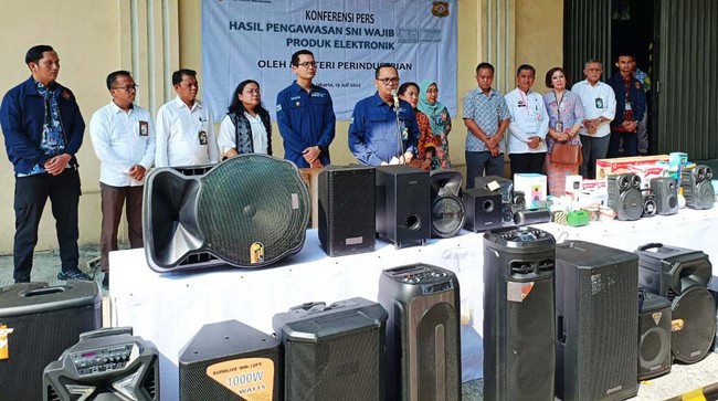 Badan Standardisasi dan Kebijakan Jasa Industri (BSKJI) Kementerian Perindustrian (Kemenperin) mengumumkan telah mengamankan sebanyak 25.257 unit speaker aktif asal China, Jumat (19/7/2024).