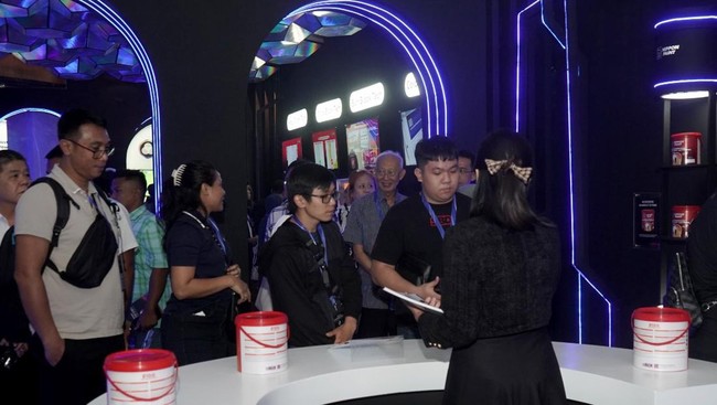 Jakarta - Brand Ambassador Nippon Paint Raffi Ahmad yang juga pengguna Weatherbond Ultimate melihat instalasi yang menggunakan cat seperti di rumahnya.