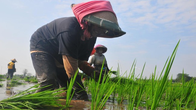 Intip Buruh Tani Tandur Padi di Kudus Meski Musim Kemarau