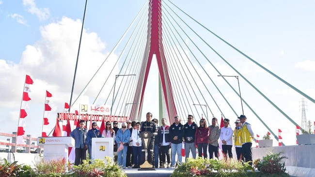 Penajam Paser Utara - Presiden Jokowi meresmikan Jembatan Pulau Balang, Penajam Paser Utara, Kalimantan Timur. Infrastruktur ini akan menunjang aktivitas di Ibu Kota Nusantara (IKN).