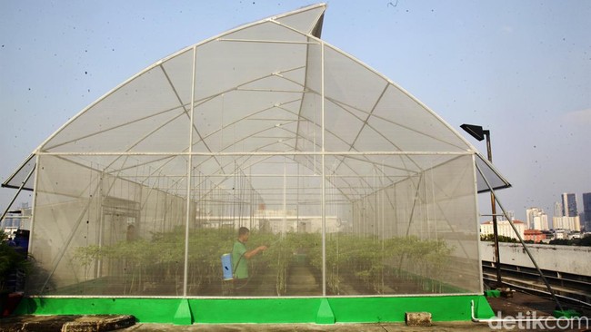 Jakarta - Berkebun dengan teknik hidroponik semakin digemari. Sebab teknik ini bisa dilakukan di ruang terbatas, seperti terlihat di atap Pasar Mayestik, Jakarta.