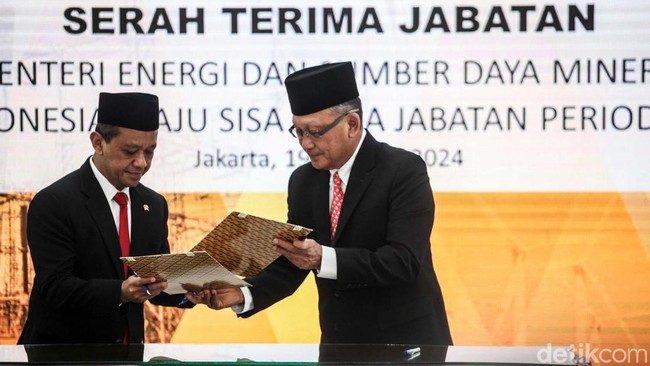 Jakarta - Bahlil Lahadalia resmi menjabat sebagai Menteri ESDM. Prosesi serah terima jabatan (sertijab) dilakukan dengan menteri sebelumnya, Arifin Tasrif.