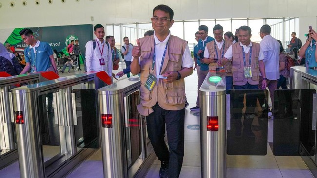 Jakarta - 8 CEO dari perusahaan operator Kereta Api di Asia Tenggara, Rabu (4/9) menggunakan Whoosh dari Stasiun Padalarang menuju Stasiun Halim. Begini gaya mereka.