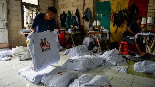 Bandung - Salah satu konveksi di Bandung, Jawa Barat, kebanjiran pesanan kaos untuk kebutuhan Pilkada 2024. Permintaan meningkat hingga 60 persen.