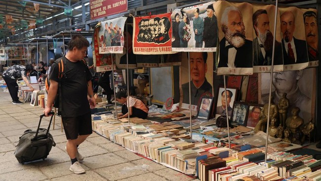 Pengunjung melihat-lihat koleksi bagian buku bekas di Pasar Antik Panjiayuan di Beijing, China. (REUTERS/Florence Lo)