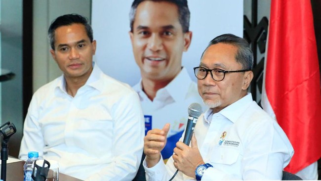 Jakarta - Mendag Zulkifli Hasan menghadiri perayaan HUT ke-56 Kadin Indonesia. Turut hadir Menteri Investasi/Kepala Badan Koordinasi Penanaman Modal (BKPM) Rosan Roeslani