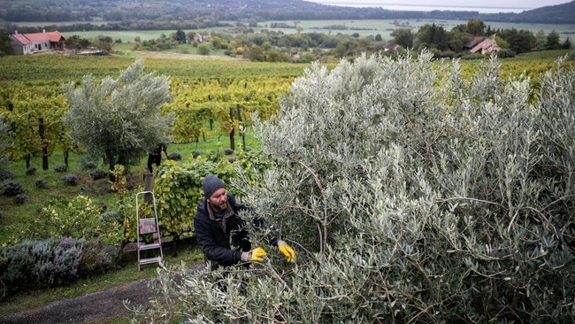 Hungaria - Pohon zaitun Spanyol menemukan rumah baru di lereng Hungaria saat iklim menghangat. Sebanyak 200 pohon zaitun berhasil ditanam di Hegymagas.