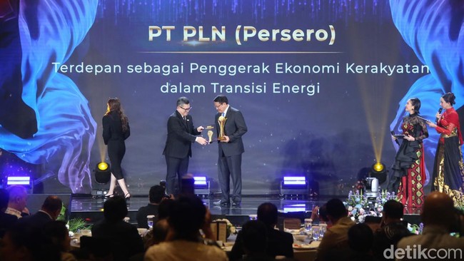 Jakarta - PT PLN (Persero) meraih penghargaan Penggerak Ekonomi Kerakyatan dalam Transisi Energi. PLN dinilai terus mendorong transisi energi dengan melibatkan masyarakat