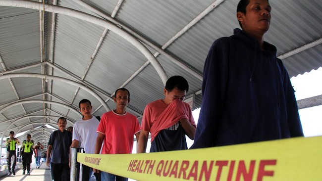 Riau - 40 pekerja migran Indonesia (PMI) yang dideportasi dari malaysia tiba di Pelabuhan Dumai, Riau. Beberapa diantaranya mengalami gejala gangguan kesehatan.