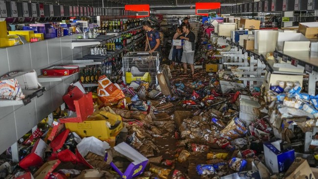 Spanyol - Kondisi supermarket di Valencia hancur terendam air berlumpur. Sejumlah warga memasuki supermarket untuk mengais barang-barang yang masih bisa diselamatkan.