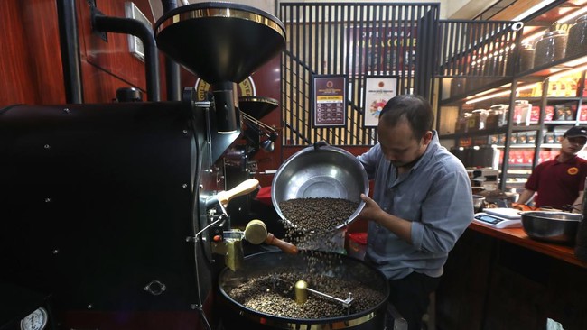 Pekerja mengolah biji kopi arabika gayo (Coffea arabica L) untuk dipasarkan di tempat pengolahan Aqilla Coffee, Ulee Kareng, Banda Aceh, Aceh, Jumat (8/11/2024).